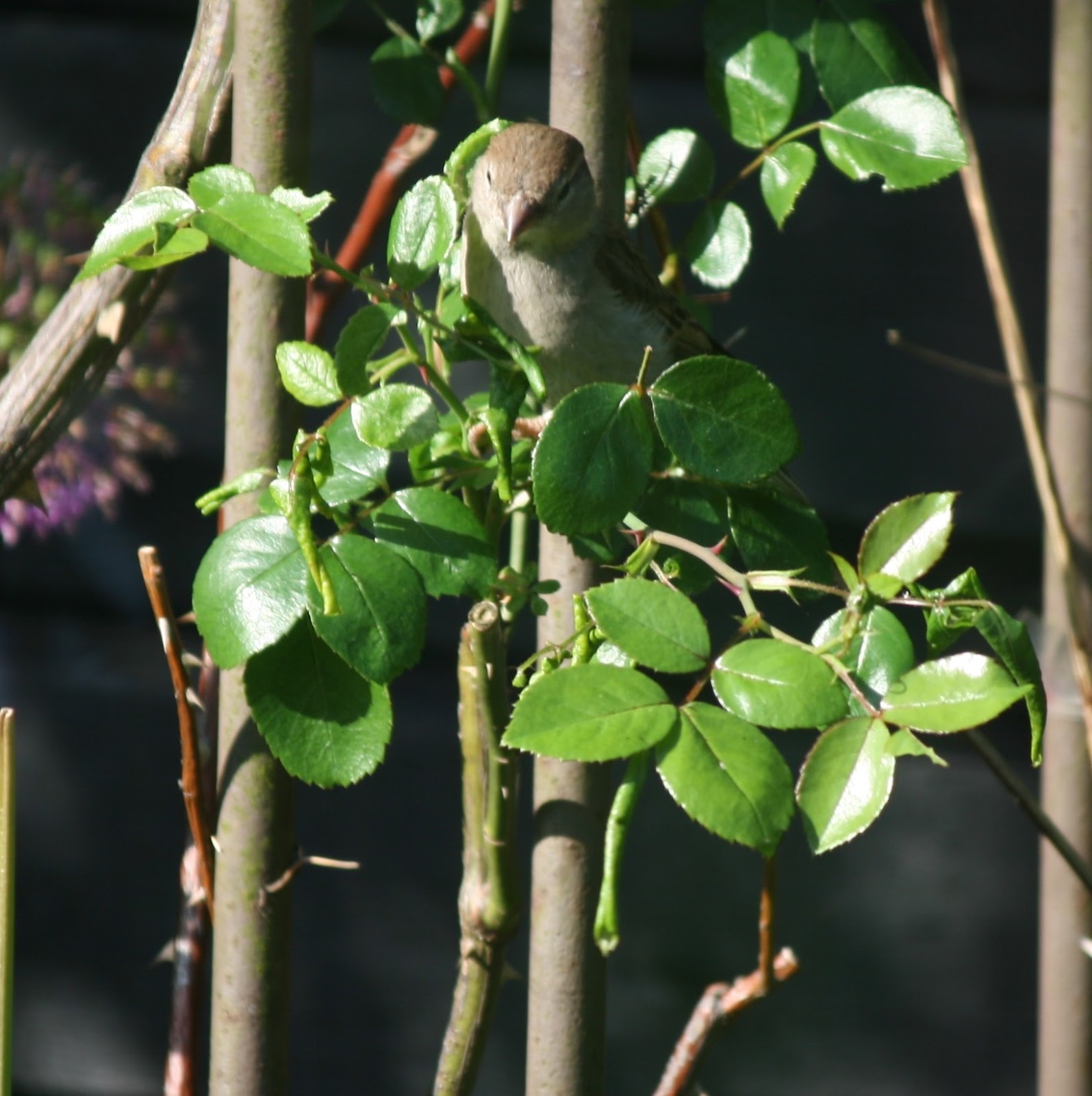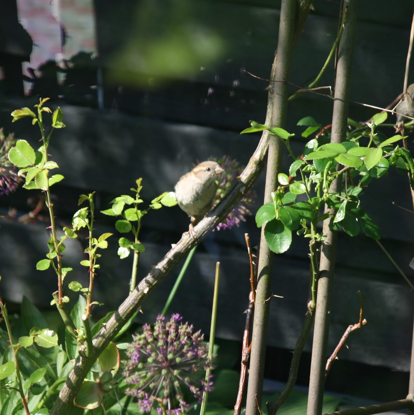 Sikke nogen fine hjælpere…. her vil fuglene hellere spise korn fra foderhuset… mine roser er nu heller ikke rigtig begyndt endnu, og jeg må selv ud og afluse 🙂