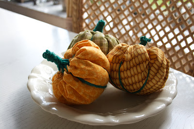 Efteråret er tid til græskarpynt og hvorfor ikke kreere nogle stykker i stof når de både er nemme at sy og meget dekorative. Jeg hyggede mig gevaldigt, imens jeg syede disse og det gik nemt at følge med i Matador i TV samtidig.